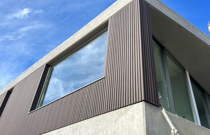 Revestimentos, em formato de ripas, oferecem uma estética contemporânea e durabilidade, sendo utilizados para melhorar o design e a proteção das fachadas de casas ou edifícios. Proporcionam proteção, isolamento térmico e estética.