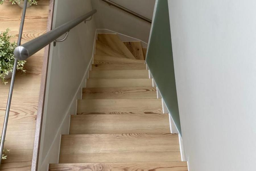 Casa Martins em Lisboa. Pavimento dk-Flooring® - dk 920 Dune com solução de perfil de escada direito. Ano 2020.