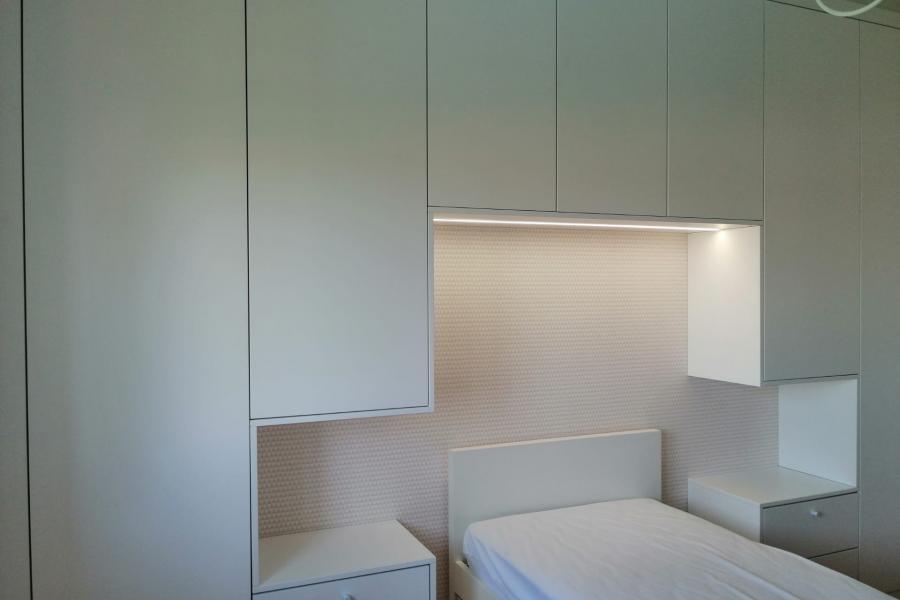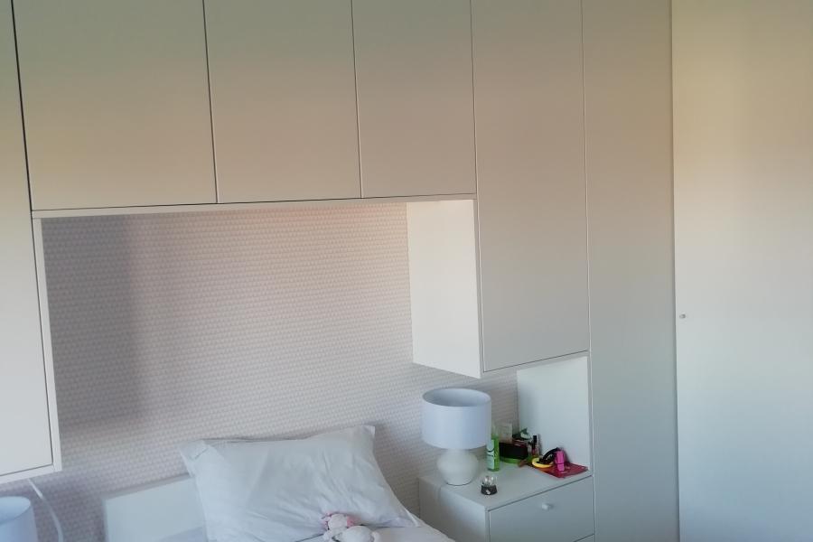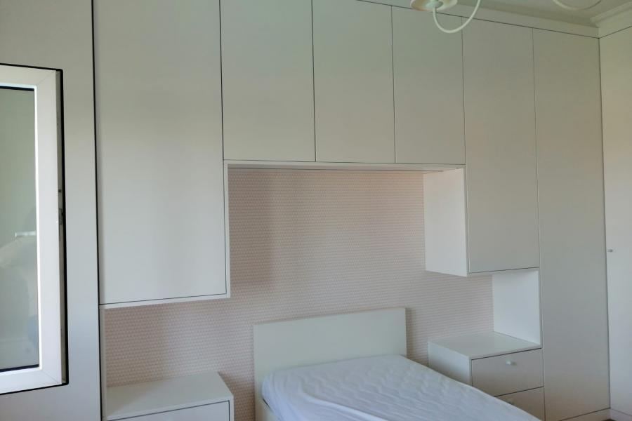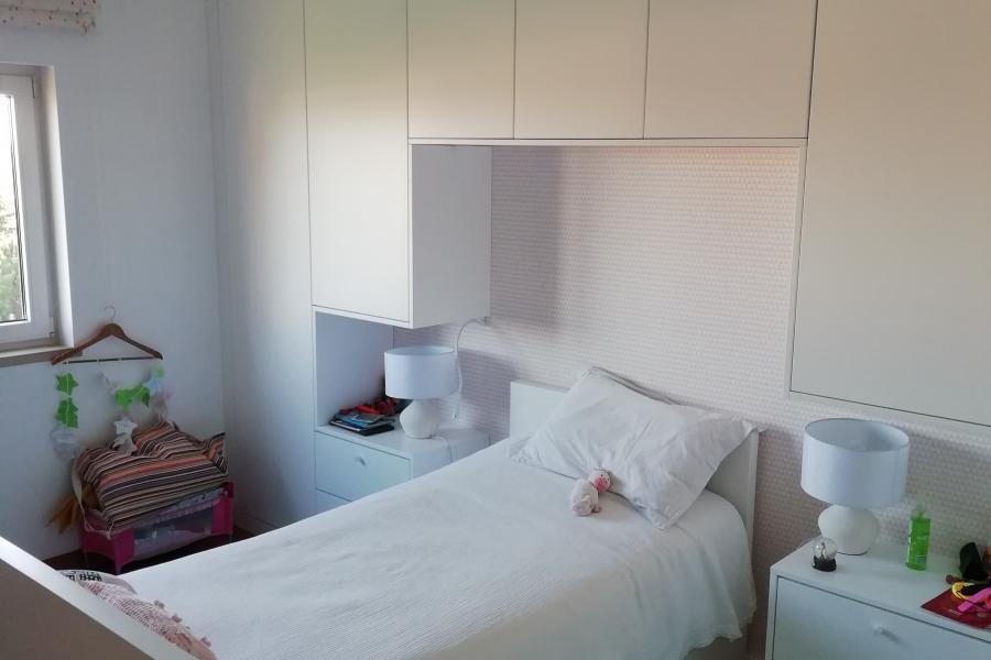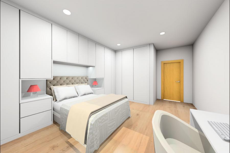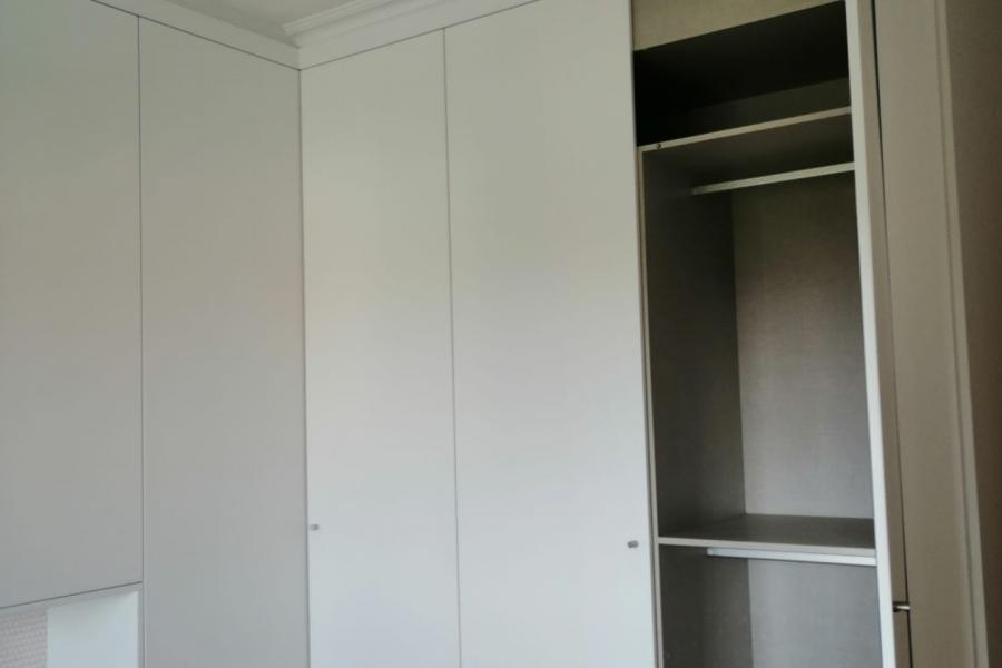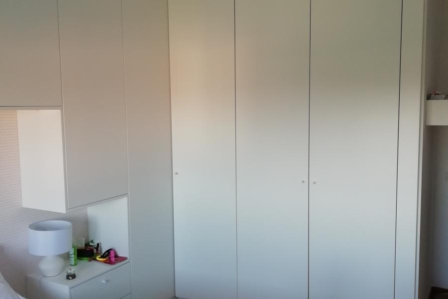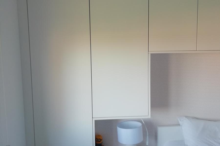 Projeto em apartamento em Beloura, Sintra. Ano 2020 Roupeiros com portas de abrir em MDF lacado branco.